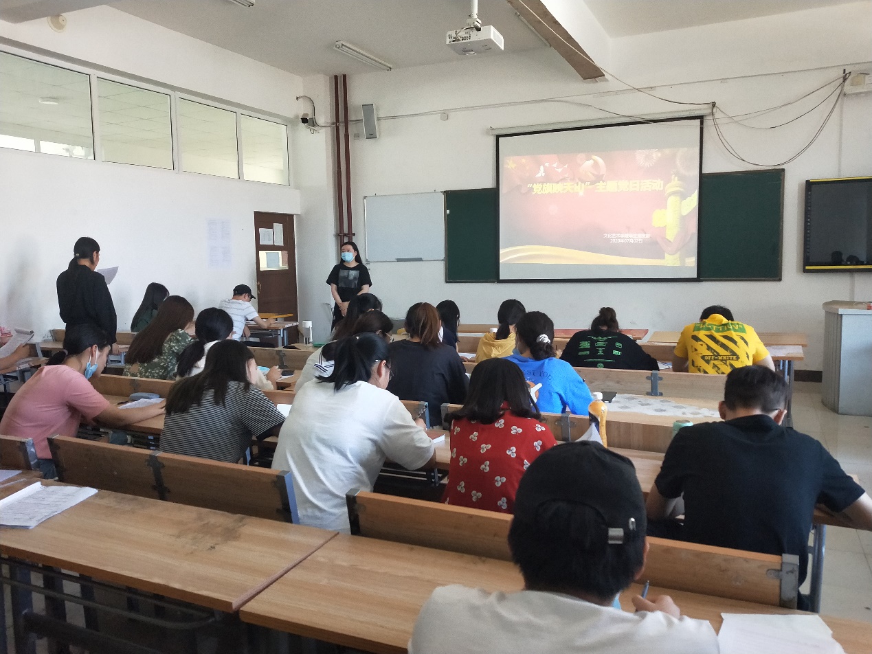 为庆祝中国共产党成立99周年,引导广大学生党员不忘初心、牢记使命,深入学习习近平新时代中国特色社会主义思想,贯彻新时代党的治疆方略,进一步凝聚我院师生建设美丽新疆、共圆祖国梦想的强大动力。文化艺术学院于2020年6月29日—7月3日在金桥校区组织开展了“庆祝中国共产党成立99周年‘党旗映天山’主题党日”系列活动。